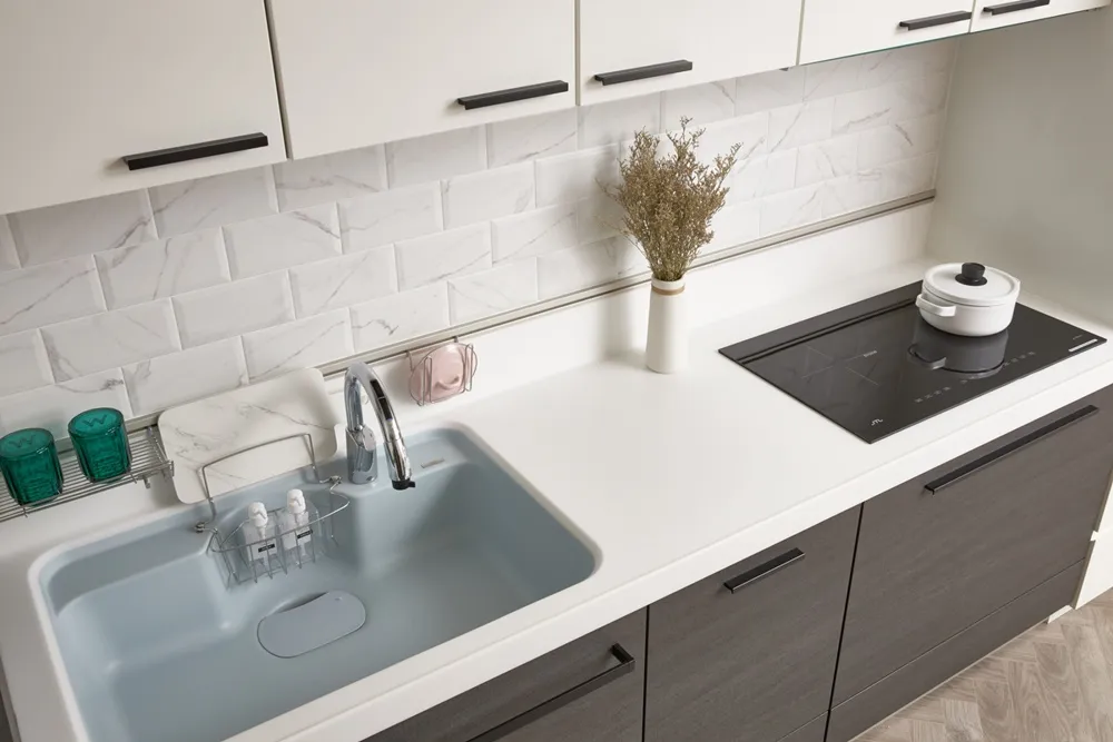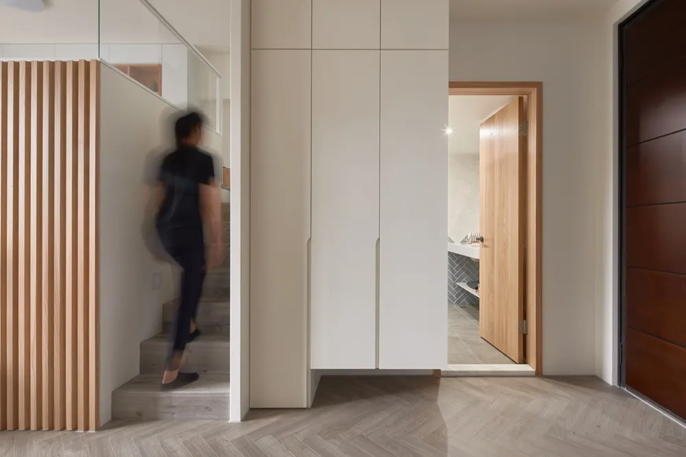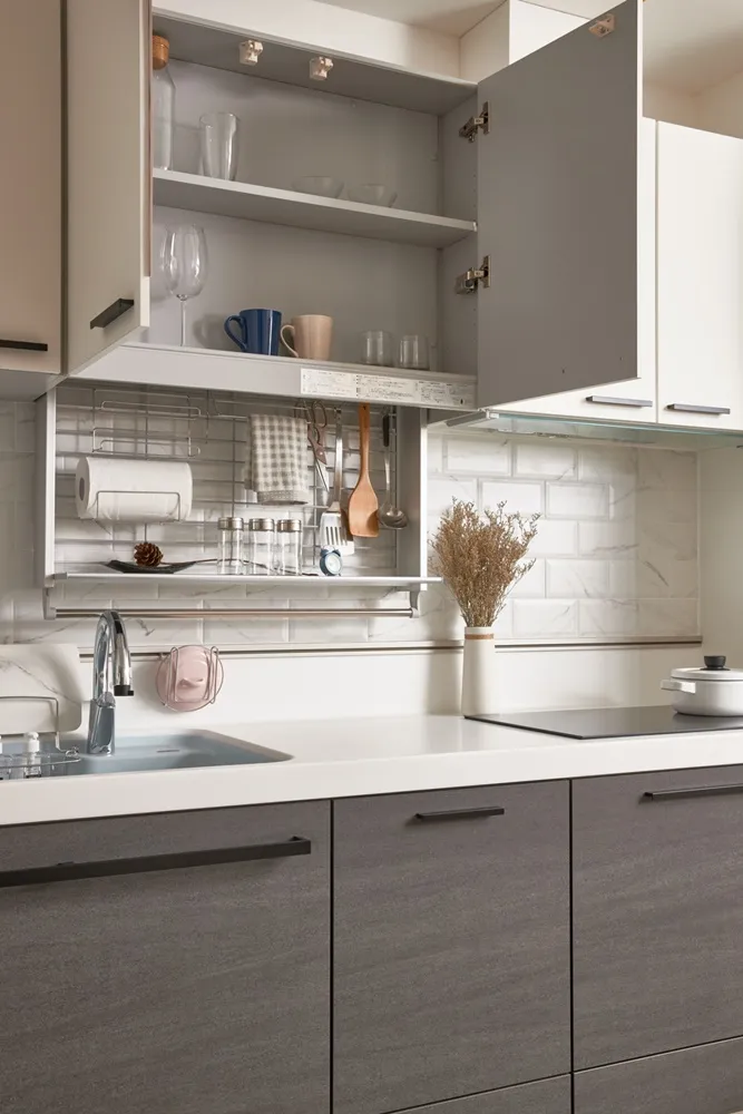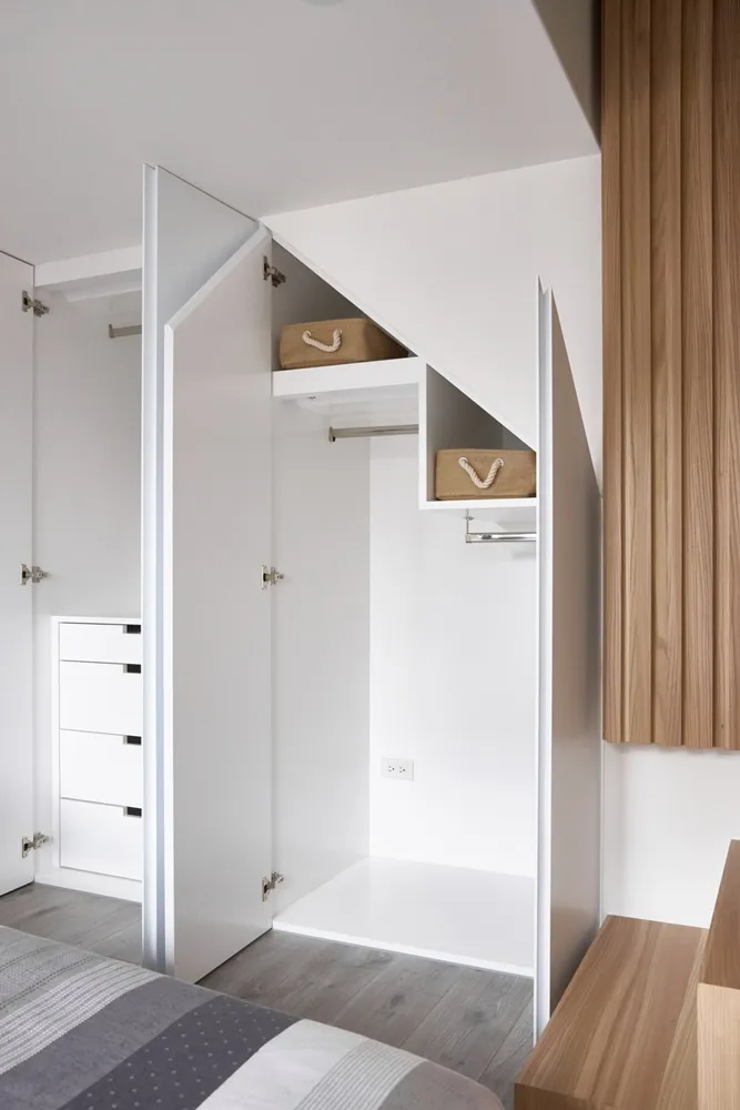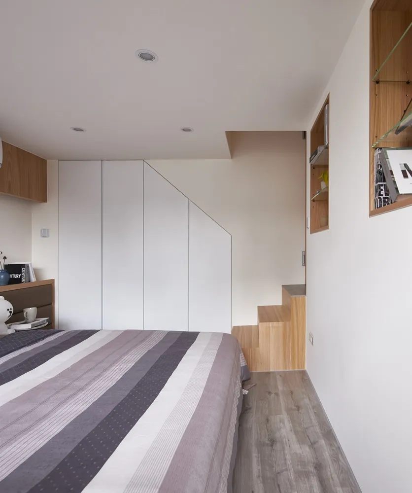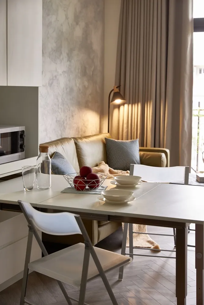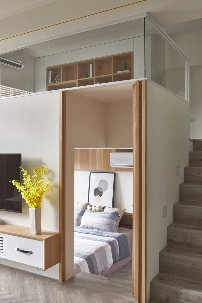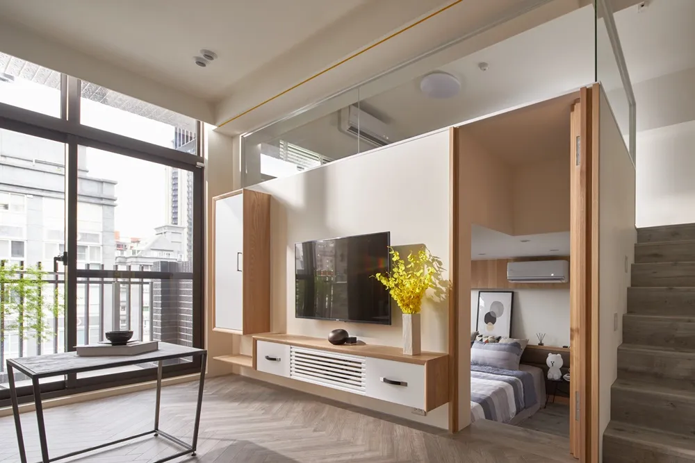 在有限的空間,不僅將色彩輕柔的帶入居家環境內,還加入了大量收納櫃,另規劃了「隱形餐桌」讓客餐廳隨時保持使用彈性的開放空間,解決居家小坪數常見的空間受限、收納不足問題。
