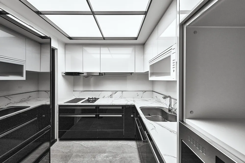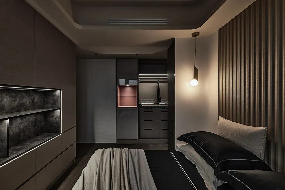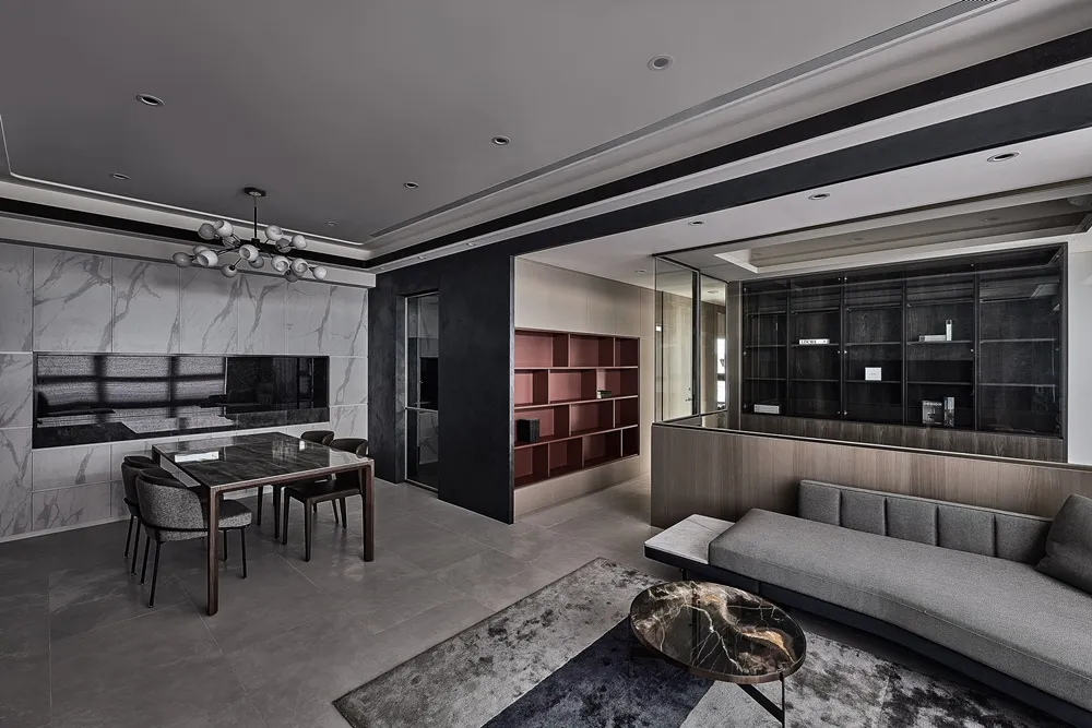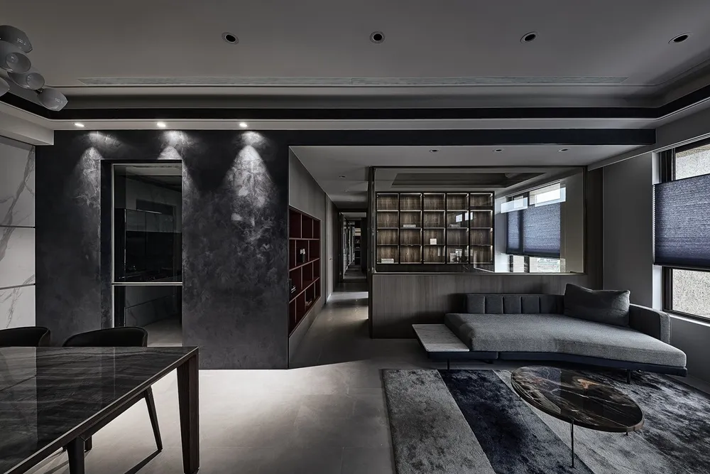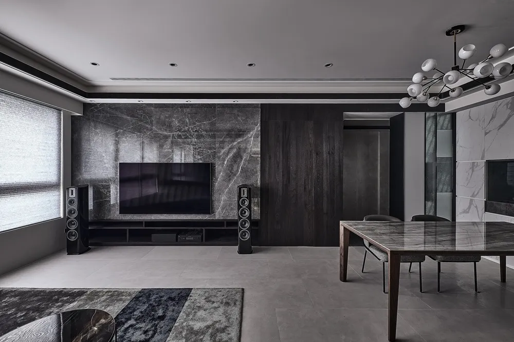 大量運用黑灰白色系,使整體空間呈現出現代時尚感