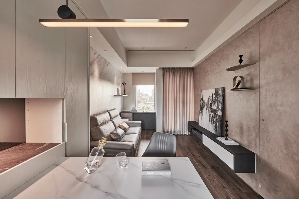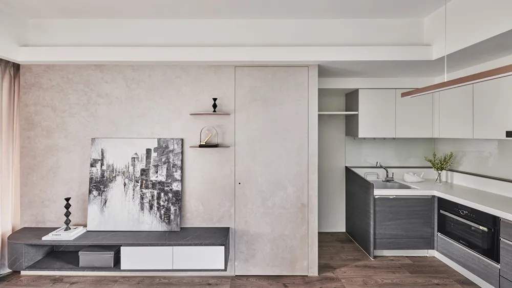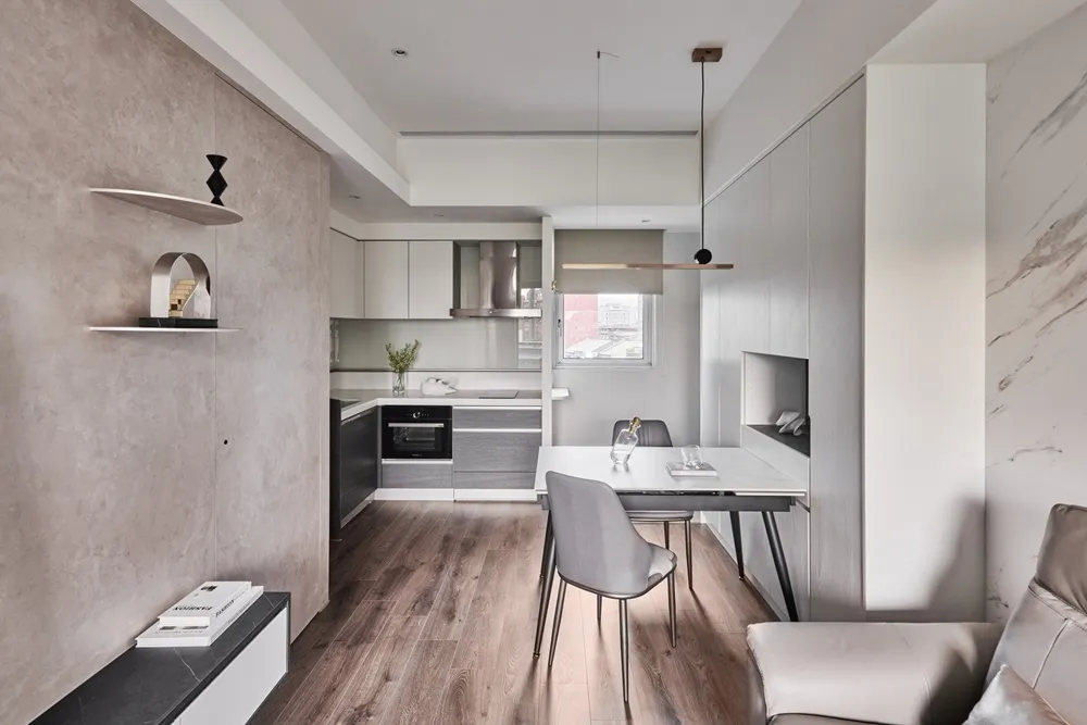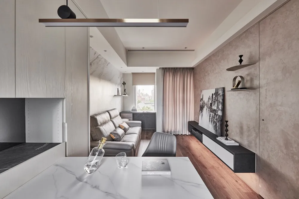 W‧E 主持設計師 黃仲均 George 室內面積 13坪 設計風格 現代 ‧ 輕奢華 家庭成員 2大人 房屋格局 1房2廳1衛 房屋狀況 6年中古屋 座落地點 台北華山 使用建材 創意美耐板/特殊塗料漆/超耐磨木地板/進口系統板 設計發想 期待每天回到家擁有自己的小天堂,打造自己夢想中的風格, 礙於原有格局零碎,故重新整頓後打造一房兩廳一衛 尤其是業主一直很想要的夢幻廚房,每天回到家烹調著簡易料理,自在無拘束的享受。