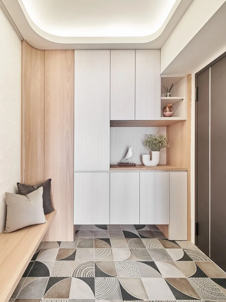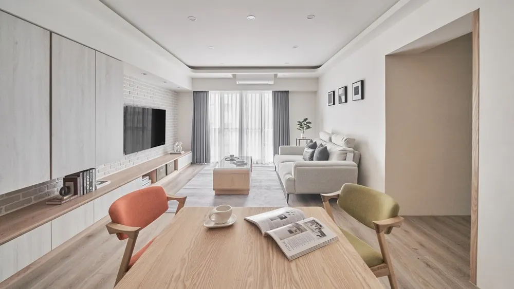 沐浴晨光 主持設計師 黃仲均 George 室內面積 27.5坪 設計風格 北歐+無印 家庭成員 3大人 房屋格局 3房2廳2衛1廚房 房屋狀況 30年老屋 座落地點 台北士林 使用建材 義大利花磚/得利乳膠漆/科定木皮板/科定3D木皮板/矽藻 /比利時Berry Alloc超耐磨木地板/系統櫃/鋁框門/玻璃門/國產磁磚 設計發想 設計的風格設定是北歐風格,希望可以利用北歐風格的木紋及明亮色系,讓空間看起來清爽舒適。透過格局的重新規劃,讓每一個使用空間都充份利用,沒有閒置的空間。