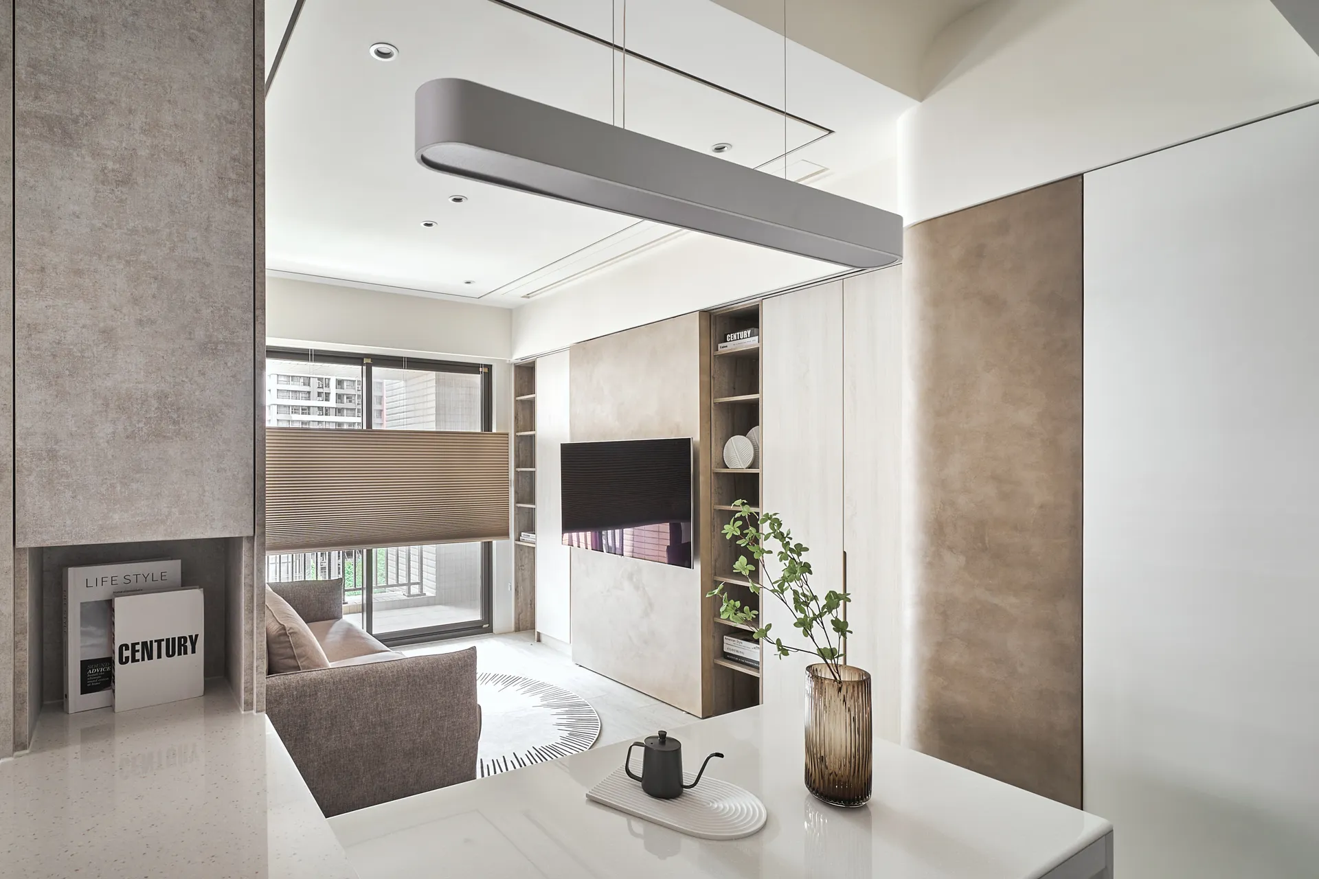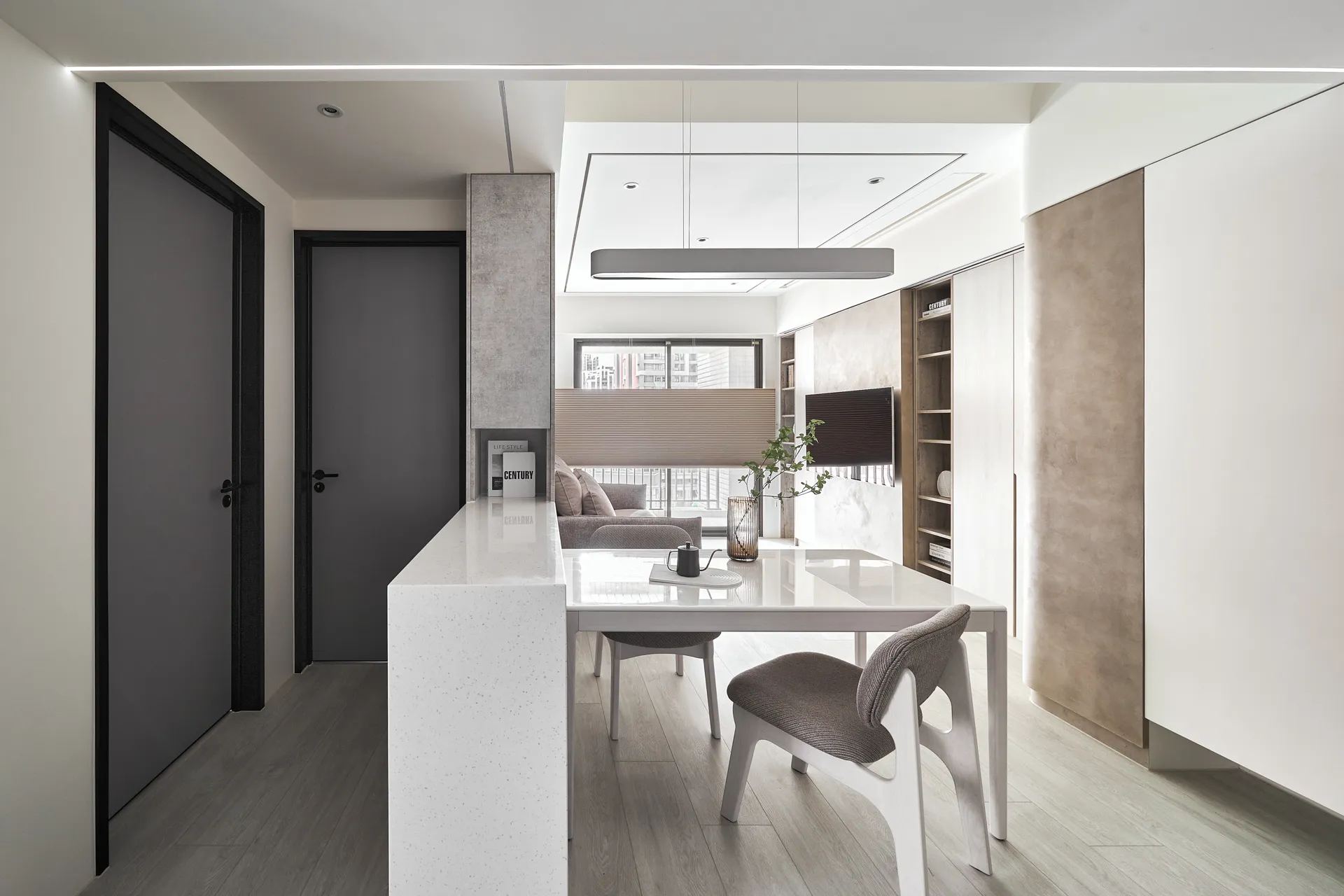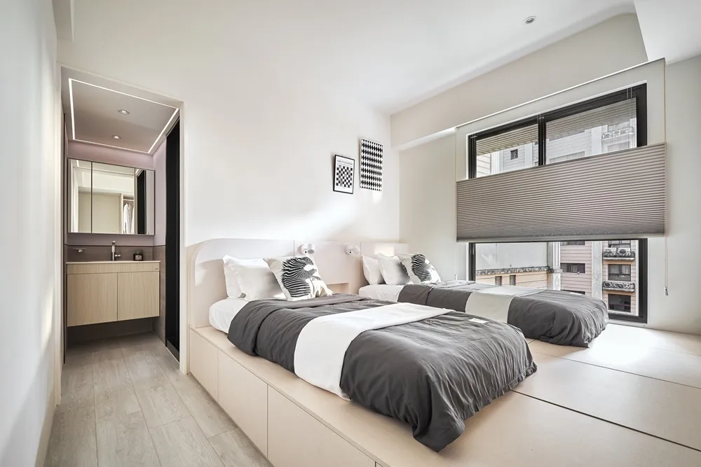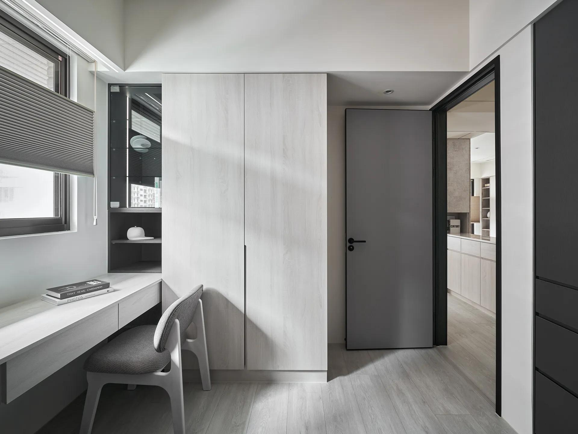 日藏 主持設計師 黃仲均 George 室內面積 20坪 設計風格 北歐風 使用建材 進口系統板、立邦乳膠漆、特殊漆、蜂巢簾 設計發想 空間的收藏取決於生活的如常 光影的點綴襯托出視覺的沉醉。