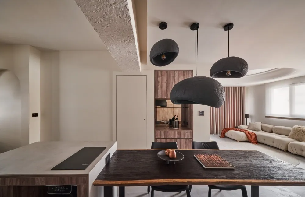 在動線格局上,將公領域空間重新分配,將玄關作為一個引景,盡頭別有洞天,同時滿足著收納視聽娛樂需求,由天然石灰岩揭開序幕,曙光乍現準備迎接永恆之光到來,預告著跨越時間之外的存在,用塗料製造仿舊感,呈現的是內蘊的英式氣質,在色調乾淨的純米白空間,觀看一場新與舊的碰撞衝擊視覺享受。