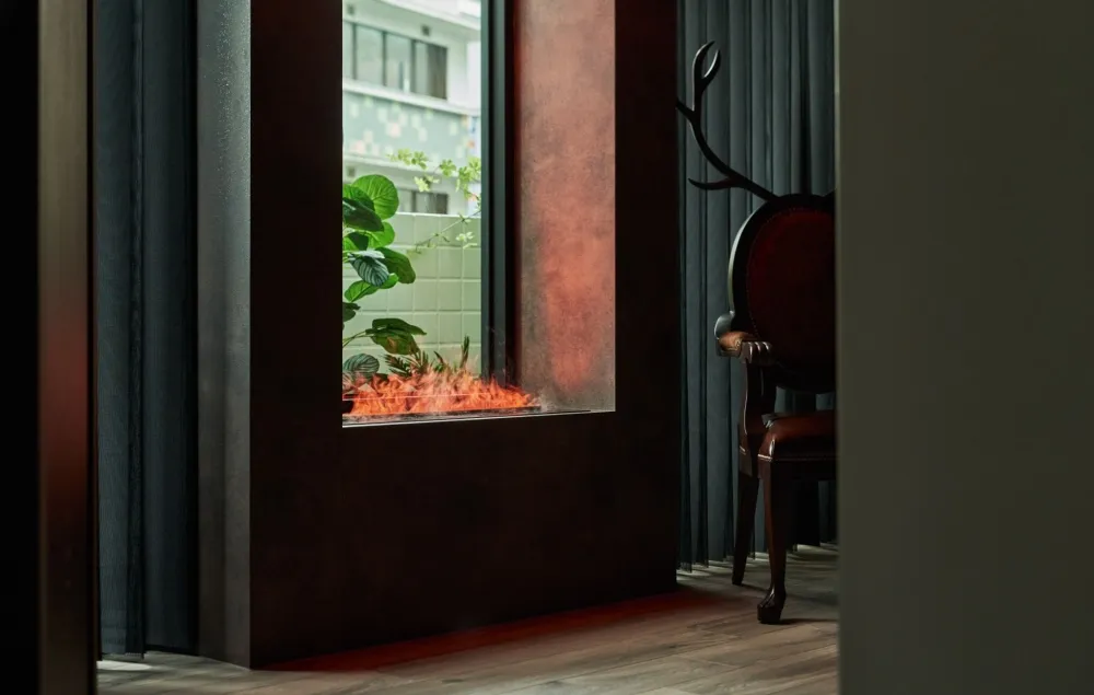 餐廳彷彿座落在中古世紀的饗宴,整排的斑駁壁面搭配復刻仿舊的吊燈,讓人有置於穿越時空的感覺,微醺陶醉在其中。