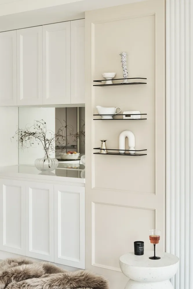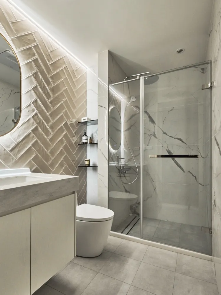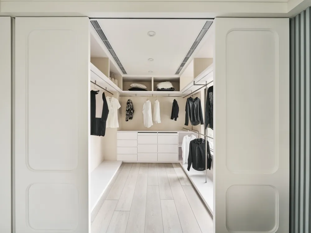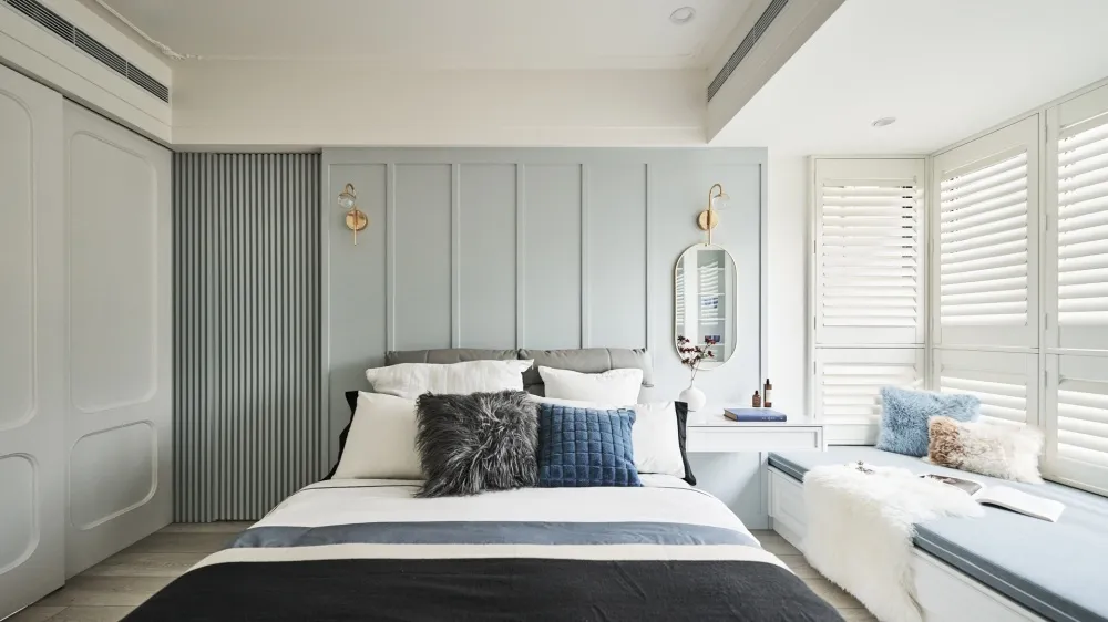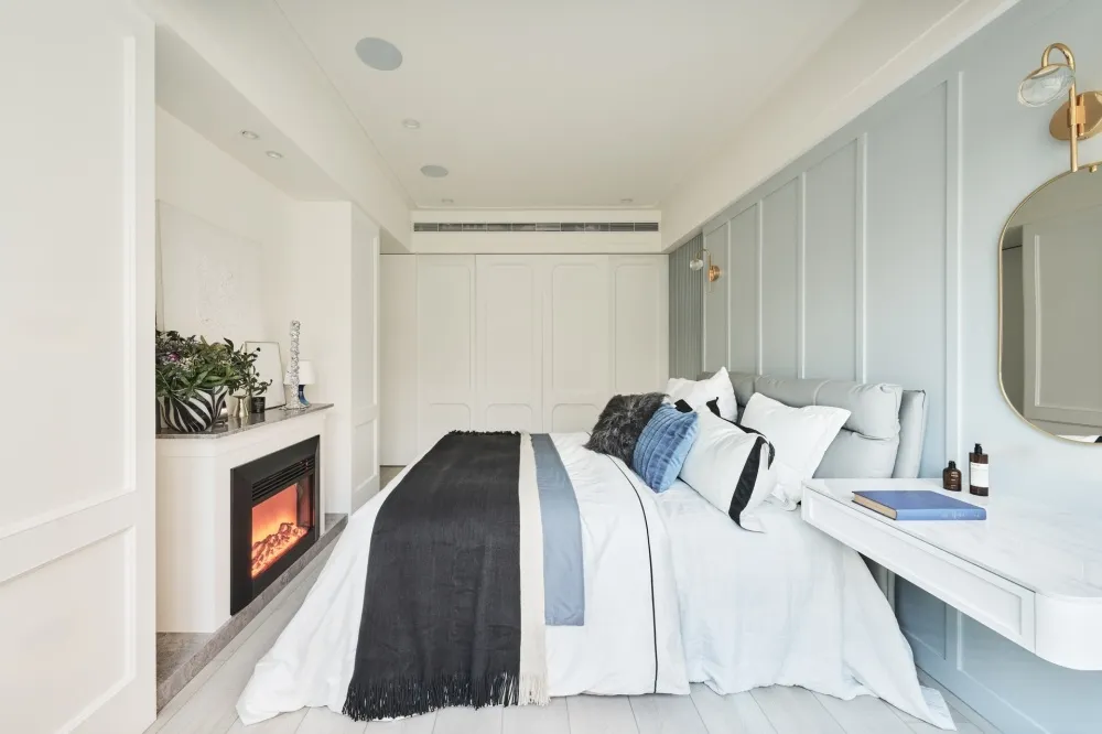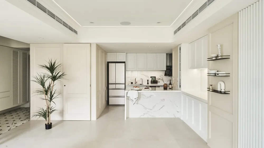 Neoclassical 主持設計師 黃仲均 George 室內面積 27坪 設計風格 美式新古典風 使用建材 班傑明環保噴漆、訂製鐵件、進口薄板磁磚、杜邦石、義大利進口磚、poll tex防霾紗窗、DK隔音氣密窗、義大利進口隔音地材、日系隔音材、百葉窗 設計發想 取自西洋建築史的新古典的意思,19 世紀在歐洲廣為流行,傳承自舊時期的線板再加以簡化 化繁為簡。 同時保留古典元素並加以俐落感。 石材採用乾淨紋路線條的款式、低調又凸顯貴氣。