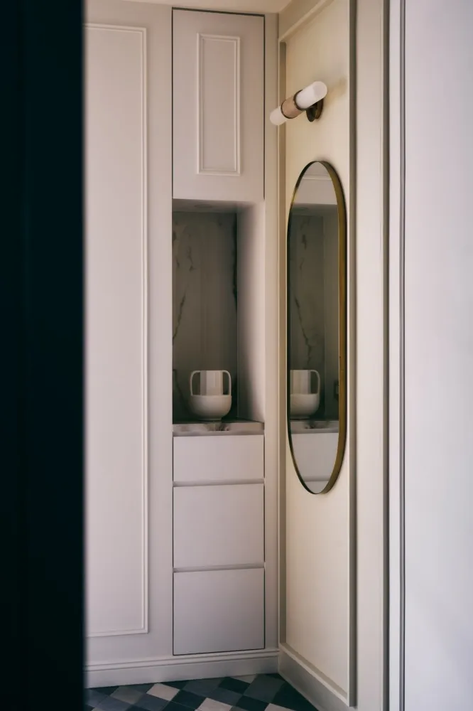 None 主持設計師 黃仲均 George 室內面積 38.5坪 設計風格 現代混搭風 使用建材 西班牙進口薄板磁磚、西班牙進口磁磚、進口比利時超耐磨木地板、KD木皮板、波蘭進口燈具、義大利進口掀床五金、日本進口把手、得利乳膠漆、義大利進口藝術漆、訂製造型藝術線板、日本進口壁紙 設計發想 現代x古典/美式x法式/平凡x藝術 誰說一定要給生活下一個定義? 打破格局限制,遊走在既存界線的邊緣,完全為一人打造,一個人的自由與多情正是「none」最好的樣貌;在潦潦無邊的藝術中,試圖為設計謀取一席之地。