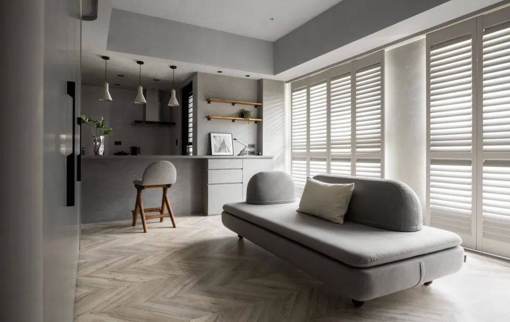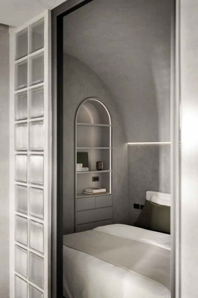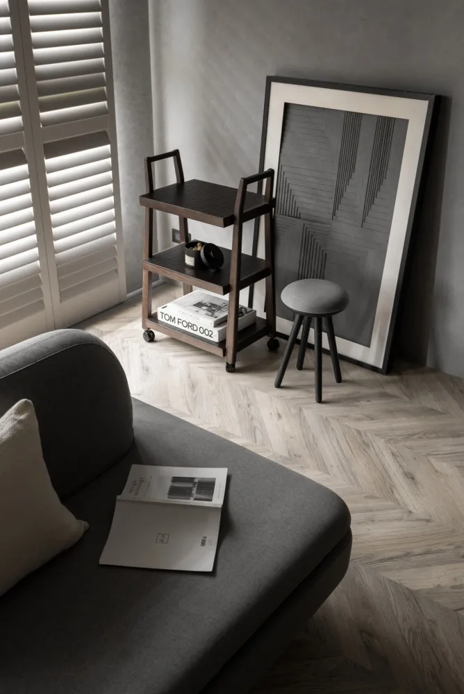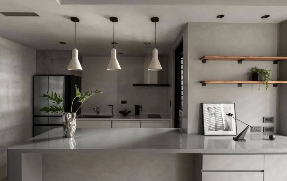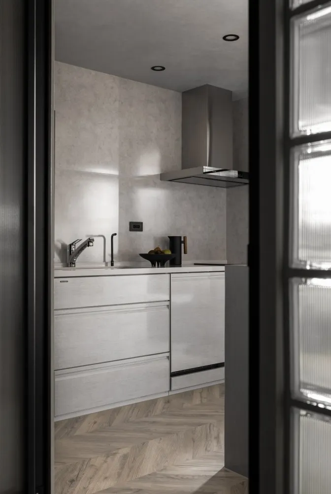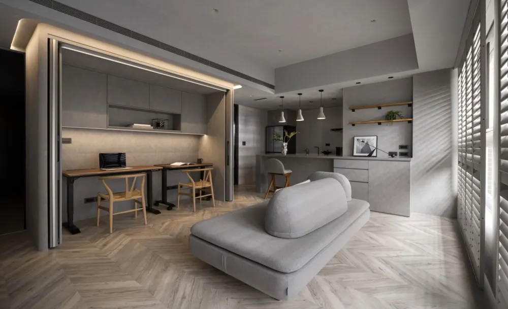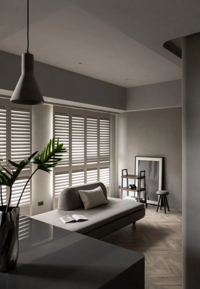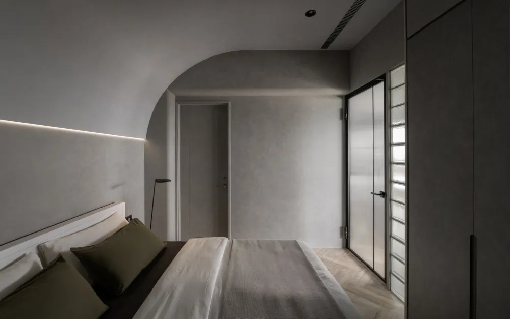 樸寓 主持設計師 黃仲均 George 室內面積 13.5坪 設計風格 侘寂風 使用建材 義大利進口磁磚、杜邦人造石、進口玻璃磚、義大利藝術漆、鋁框玻璃門 設計發想 徜徉世界各地旅途 總有 如是安心散落自己 所在 無彩靜謐堆疊生活 灰色 引光入室圓圓弧弧 擁抱 是你 是我 是我們 如常相伴