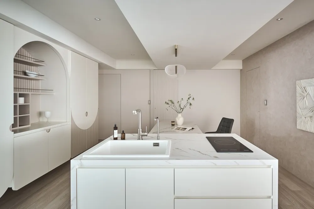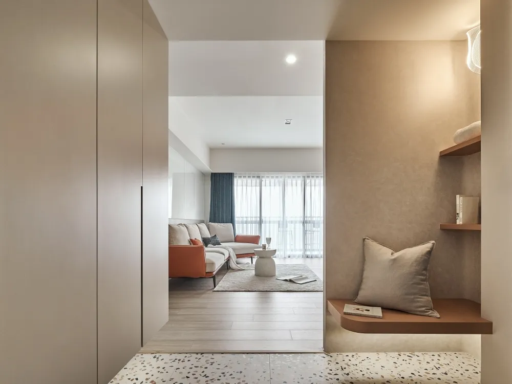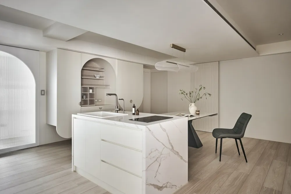 沐晨 主持設計師 黃仲均 George 室內面積 50坪 設計風格 現代風 使用建材 進口薄板磚/超耐磨木地板/水磨石磁磚/木紋磚/不銹鋼鐵件/進口系統櫃/義大利進口藝術塗料/環塑木 設計發想 每當沐浴早晨的陽光,都伴隨著溫暖與希望, 虛實自如的空間,乘載著赤子之心。 來自世界各地的寶物,都將沐浴在各自的陽光下, 處處散發著喜悅及回憶。