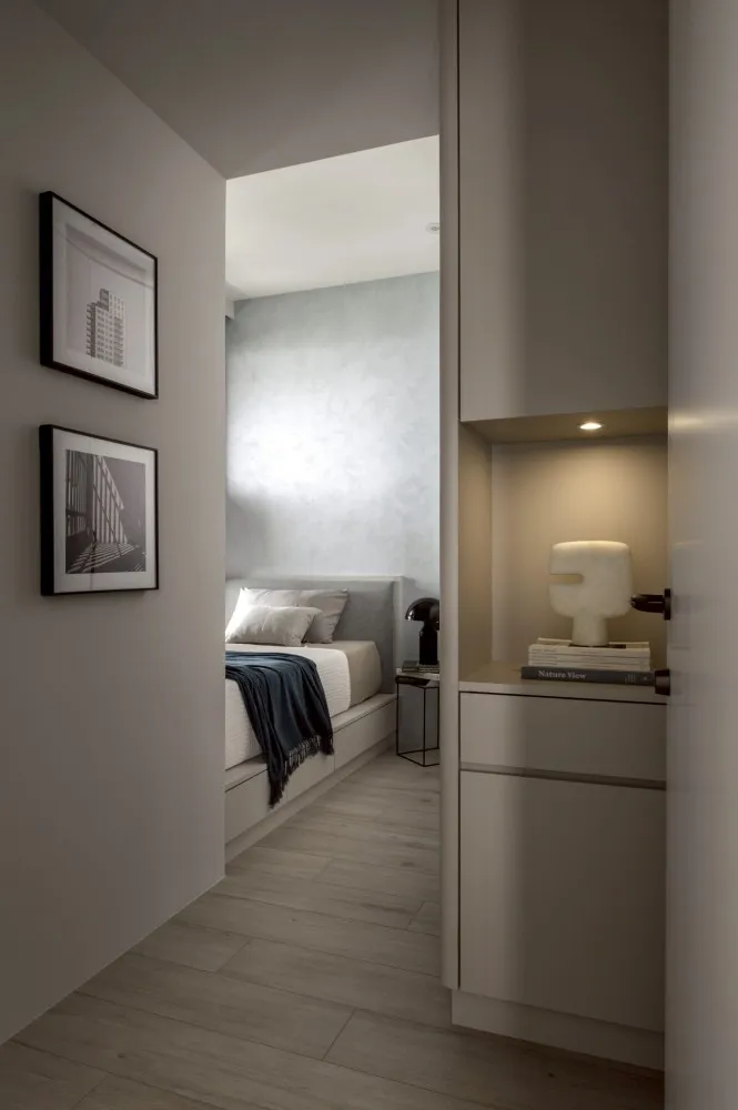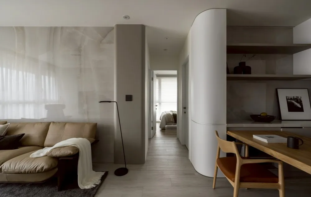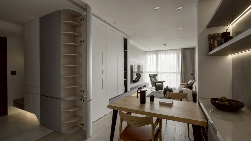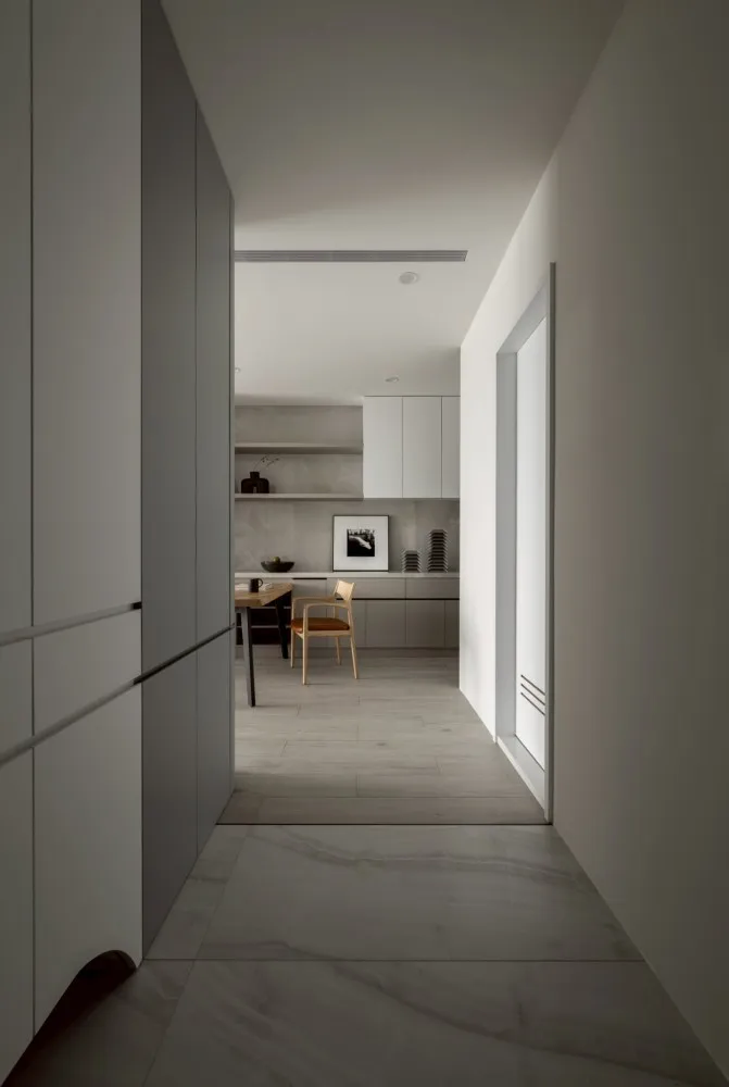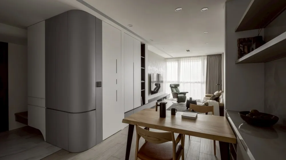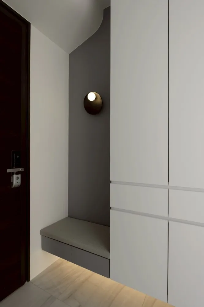 藏玉 主持設計師 黃仲均 George 室內面積 26坪 設計風格 現代風 使用建材 西班牙薄板磚/義大利FENIX美耐板/KD可彎美耐板/歐洲進口磚/義大利特殊漆 設計發想 頑石之中良玉隱焉,摘自《格言聯璧·接物類》意指:普通的石頭有美玉隱藏其中。只要細細發現,生活中處處都是寶藏。借用此意境 帶入空間,加以轉化,常見的素色 加以塑形,搭配高貴的灰玉也可以成為最美的光景。