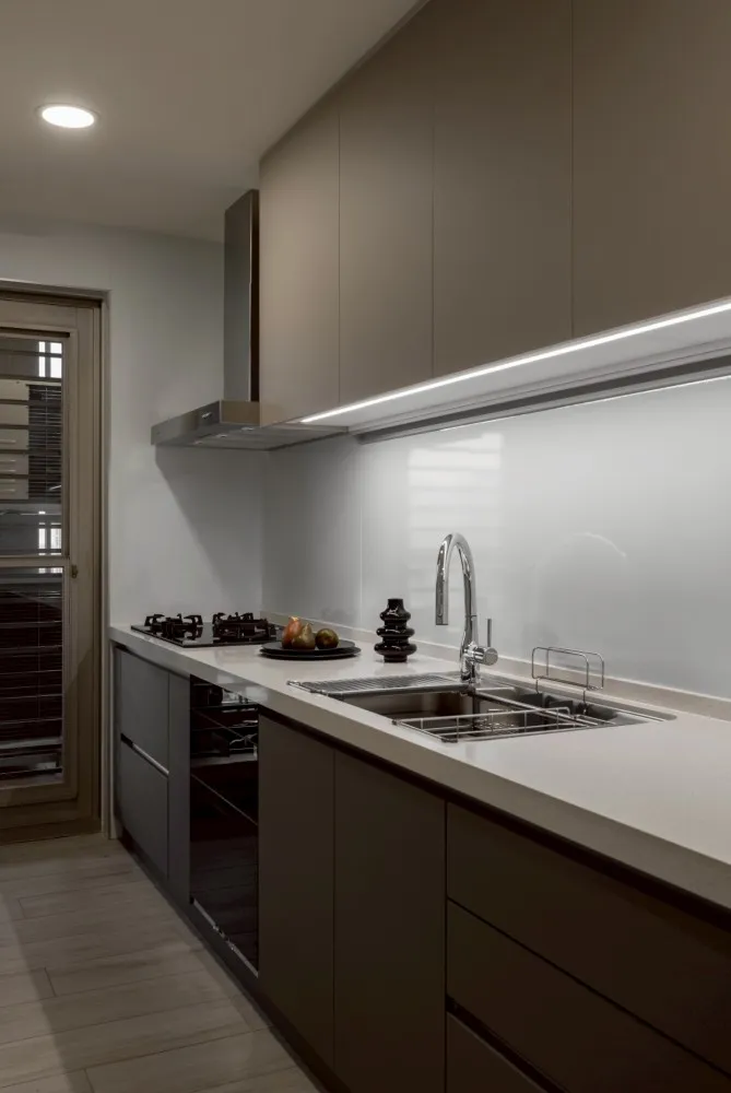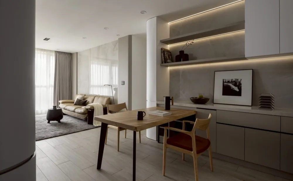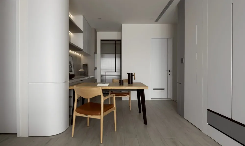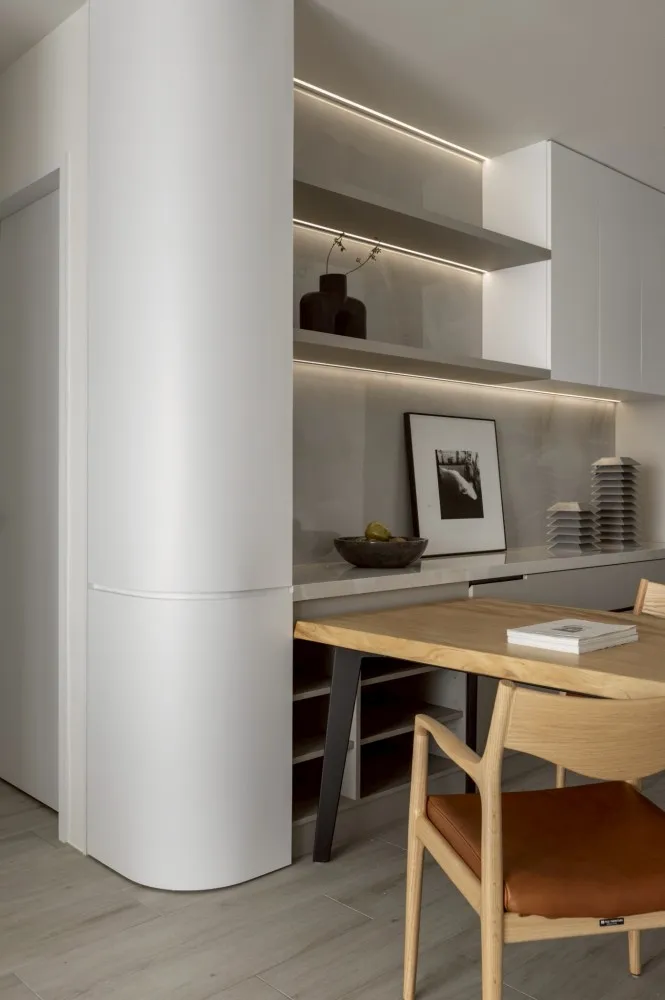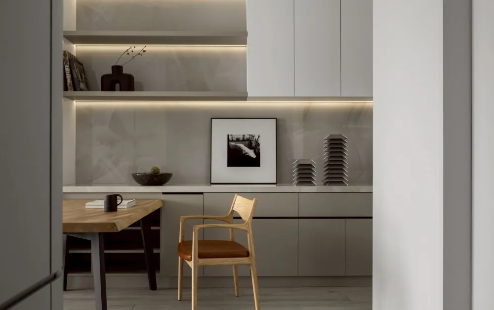 藏玉 主持設計師 黃仲均 George 室內面積 26坪 設計風格 現代風 使用建材 西班牙薄板磚/義大利FENIX美耐板/KD可彎美耐板/歐洲進口磚/義大利特殊漆 設計發想 頑石之中良玉隱焉,摘自《格言聯璧·接物類》意指:普通的石頭有美玉隱藏其中。只要細細發現,生活中處處都是寶藏。借用此意境 帶入空間,加以轉化,常見的素色 加以塑形,搭配高貴的灰玉也可以成為最美的光景。