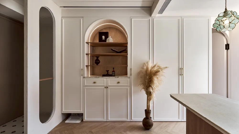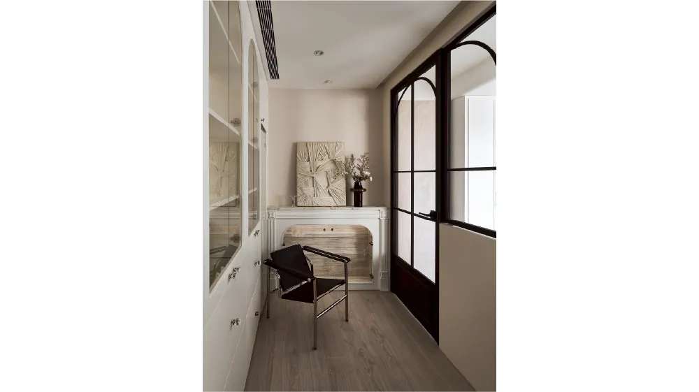 整體設計以「法式奶油」為主軸,揉合法式線板元素與現代俐落比例,打造出一個既優雅又實用的居家氛圍。