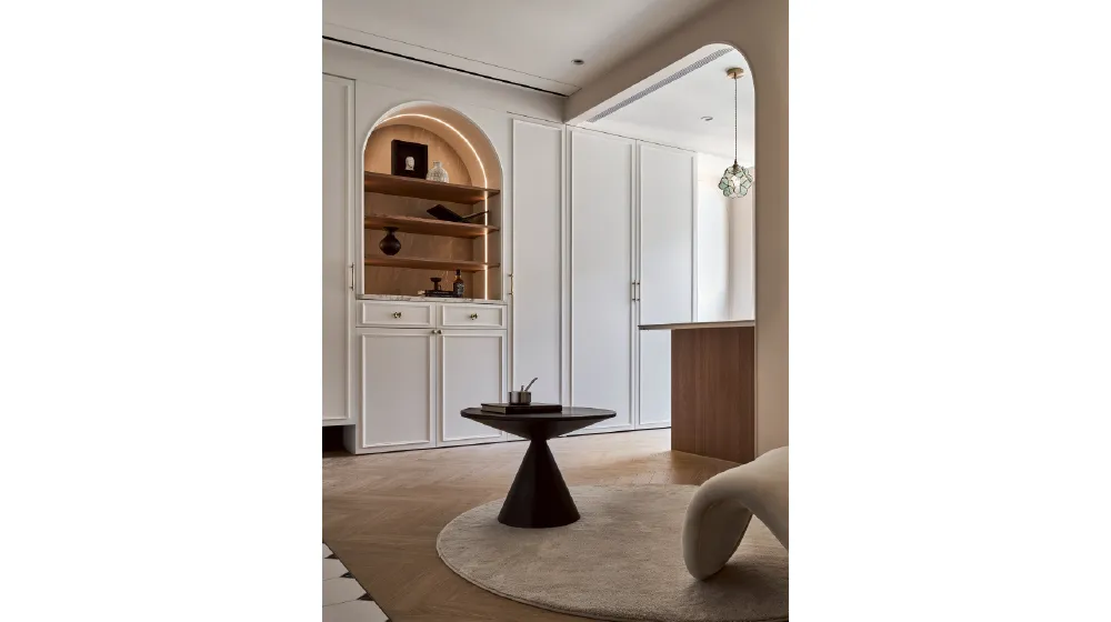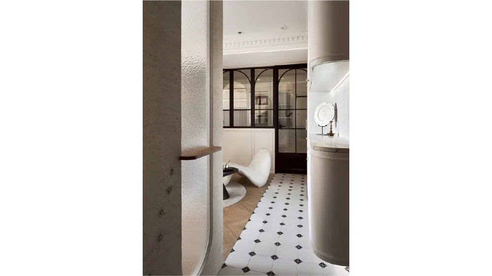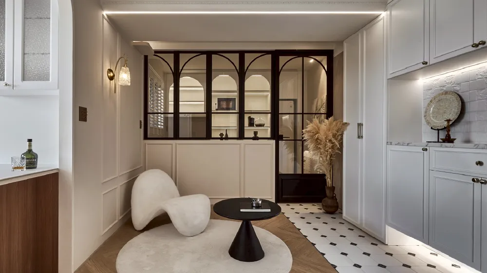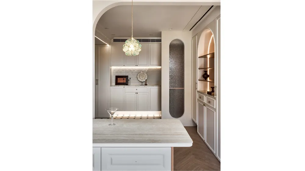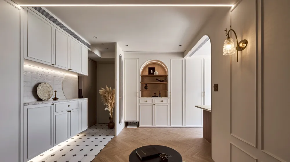 弧形拱門、雕花線板、精緻燈飾延伸出法式的浪漫韻味,讓每一處轉角都充滿細節。